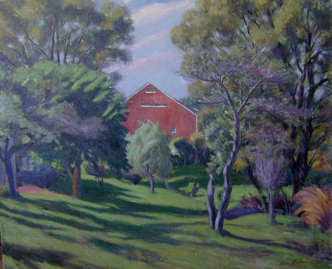 Landscape with Red Barn from 1940 shows a view of the east side of the Studio (when it was still very much a barn and painted red) from the vantage point of the front of the house. We have not exhibited this work in ten years, since the exhibition, Portraits and Landscapes by Ben Solowey at  Lebanon Valley College as part of Ben’s Centennial Celebration.